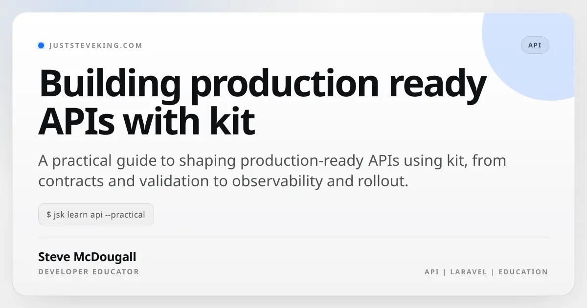 Steve McDougall introduces Kit, an opinionated Laravel starter package designed to solve common API development problems like inconsistent responses, security issues, and versioning challenges. The comprehensive tutorial covers setting up Kit with PHP 8.5 and Laravel 12, focusing on token-based authentication and production-ready API architecture.